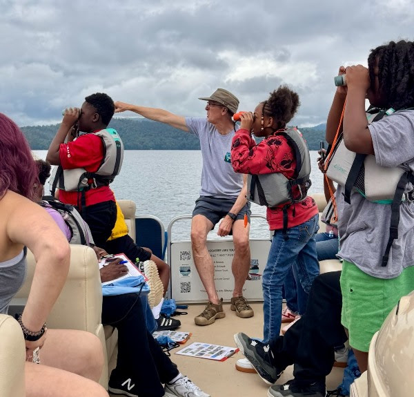 “Welcome to the Jocassee Gorges! This is YOUR place.” I smiled and held my arms out toward the beautiful cloud-kissed wall of mountains in front of us. The Jocassee green waters shimmered all around. The slightly awkward 6th graders on my boat were from Oconee County. “We are going to get to know your place a little better today.” Our first stop took us on a wander through a rain-softened pine forest. The Jocassee Gorges provide a welcome stopping place for migrating songbirds in the fall. I was hoping to hear some birds. We paused for a listen. Sure enough, the short whips of a wood thrush rang out and one of the boys pointed ahead on the ground where a wood thrush was busy foraging. Next we heard the chip of a hooded warbler. I showed them a picture of the bird we were hearing and exclamations of its beauty were given. “This looks like a rainforest bird, doesn’t it?” I explained that this bird migrates from our temperate rainforest to the tropical rainforest every year. A little further down the path I noticed the canopy was busy with birds. I stopped the students and motioned for silence. I began making a soft pishing sound. Within 30 seconds we were surrounded by birds and there right in front of us was a bright yellow hooded warbler! Even the coolest kid in the group was wide-eyed. We went on to touch jelly fungus, taste persimmons, examine coyote scat, explore river otter caves, and swim with the fish. We got a small glimpse into the rich diversity found in one amazing place. On the way back in, I asked them how nature made them feel. I got the usual answers: calm, adventurous, excited. Then the one dark-skinned boy on the boat raised his hand and said, “I feel welcomed, like I belong.” ~Tricia Kyzer, JLT guide and JWC instructor.